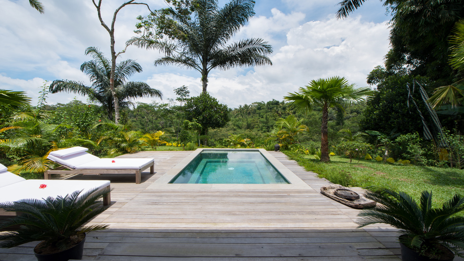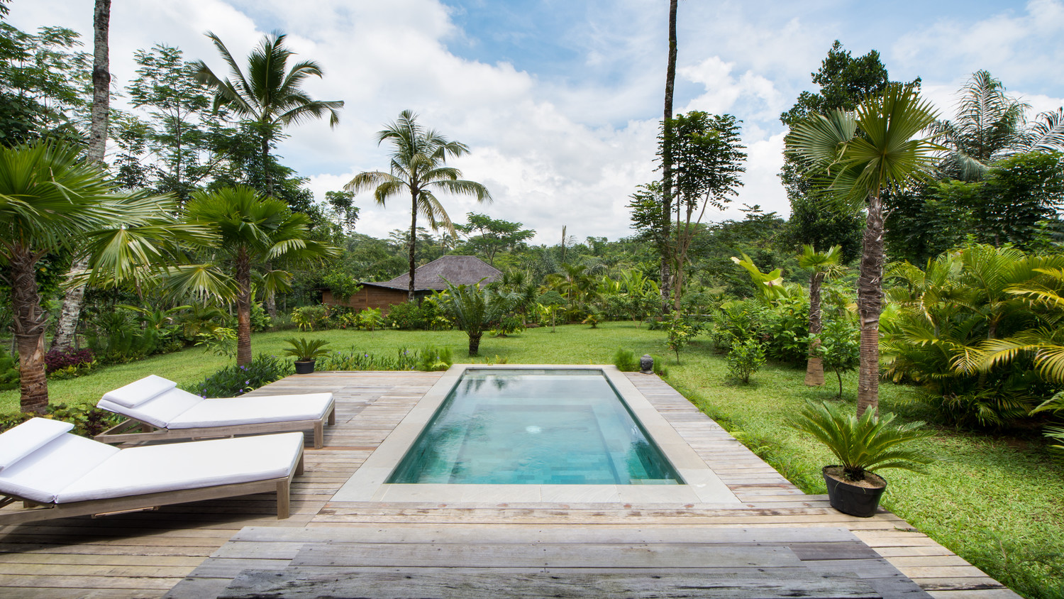 На вилле пять бассейнов, а в центре главного бассейна находится йога-шала, достаточно большая для 20 участников. Поместье окружено тропическими лесами и пышными садами и может похвастаться собственным органическим огородом и плодовыми деревьями с экзотическими фруктами. Декор виллы включает в себя уникальный индонезийский антиквариат, предметы искусства и текстиль, созданные местными мастерами с большим вниманием к деталям.