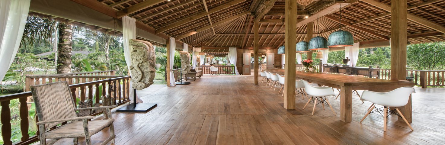 Большое поместье в традиционном Балийском стиле в районе Ubud на территории 1 гектар в окружении тропического леса. 8 спален в 5 просторных павильонах с террасами и ванными комнатами. Собственный бассейн у четырех павильонов. Один большой общий бассейн. Павильон с общей гостиной. Павильон со столовой. Кухня. Павильон для йоги и медитаций. Штат обслуживающего персонала. Профессиональный шеф-повар. WiFi интернет.
